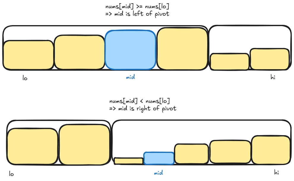 if nums[mid] >= nums[lo]: # mid is on the left of break