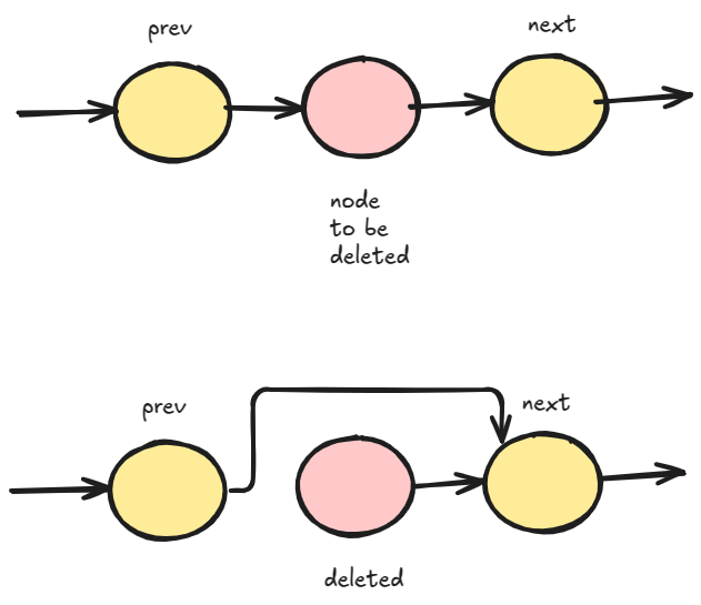 As long as we know the previous and the next nodes of the to-be-deleted node, we can update the pointers to delete the node.
