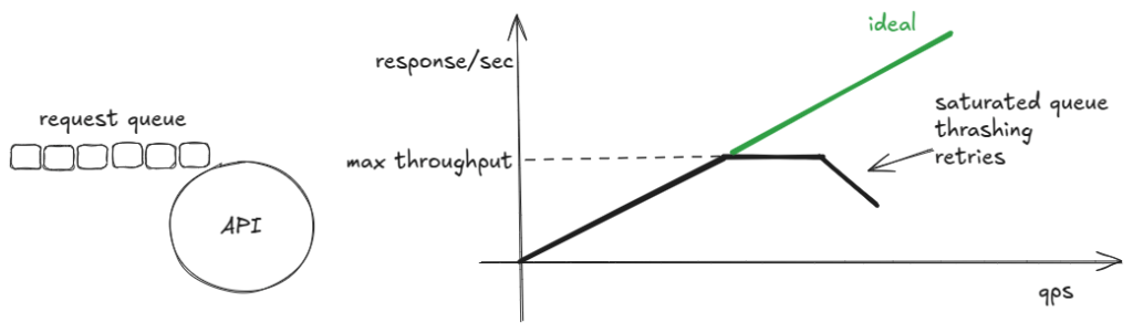 With a given amount of resource, as QPS increases, a system will eventually hit the maximum QPS it can support.