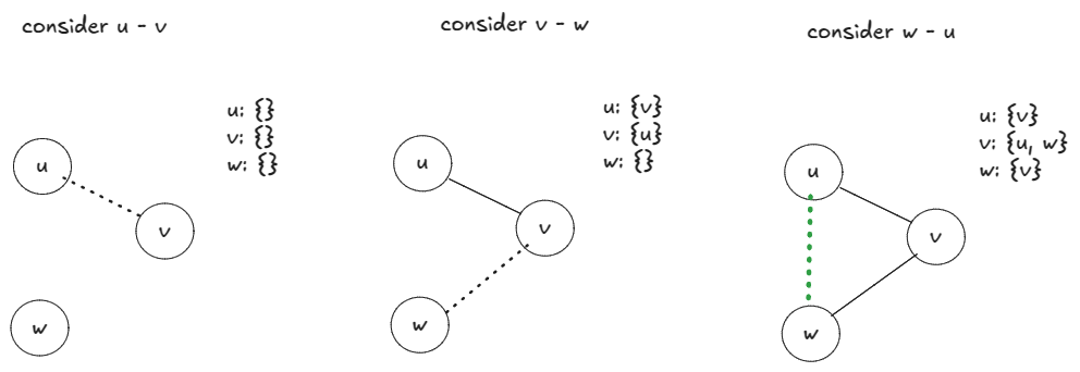 cycles.add( tuple( sorted([u, v, w]) ) )