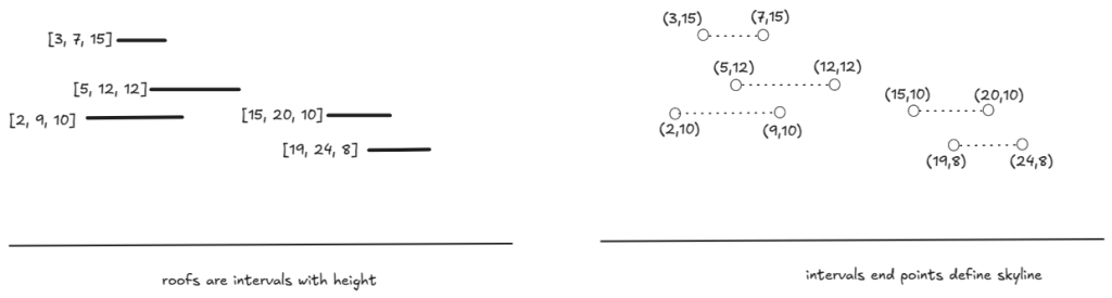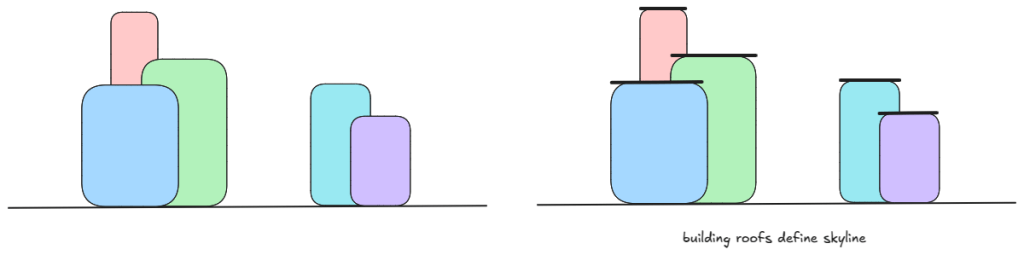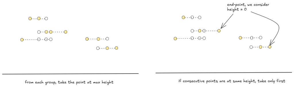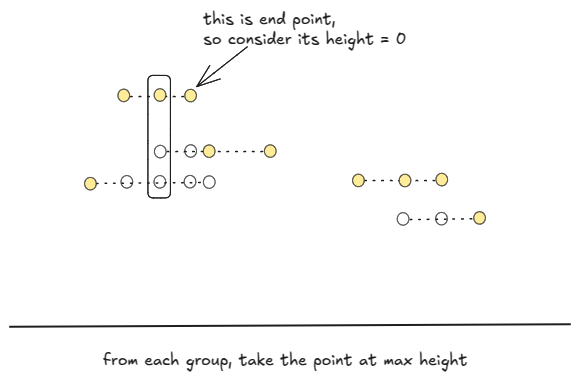We can find the skyline points from the groups of heights at different locations — from each group, just take the point at the maximum height.