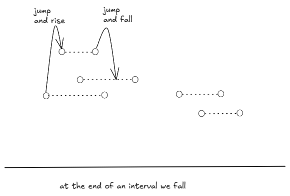 If we jump from the end of a roof, we fall to the next higher roof or we fall to the ground.