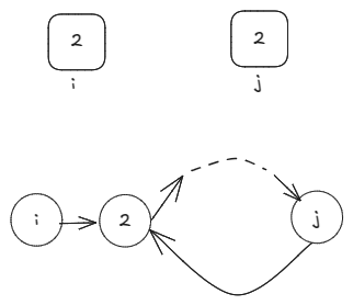 Say nums[i] = 2 and nums[j] = 2. This creates a cycle.