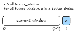 If we find that is bigger than all numbers in the current (sliding) window, we need to keep track of just