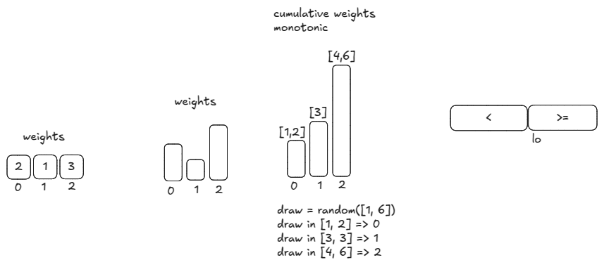 if self.cum_weight[mid] < draw: