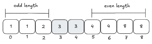 right = mid+2 if mid+1 < n and nums[mid] == nums[mid+1] else mid+1